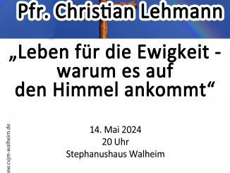 Pfr. Christian Lehmann „Leben für die Ewigkeit – warum es auf den Himmel ankommt” 14. Mai 2024 20 Uhr Stephanushaus … WEITERLESEN