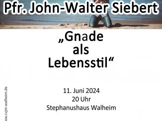 Pfr. John-Walter Siebert „Gnade als Lebensstil” 11. Juni 2024 20 Uhr Stephanushaus Walheim Herzliche Einladung.