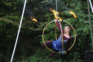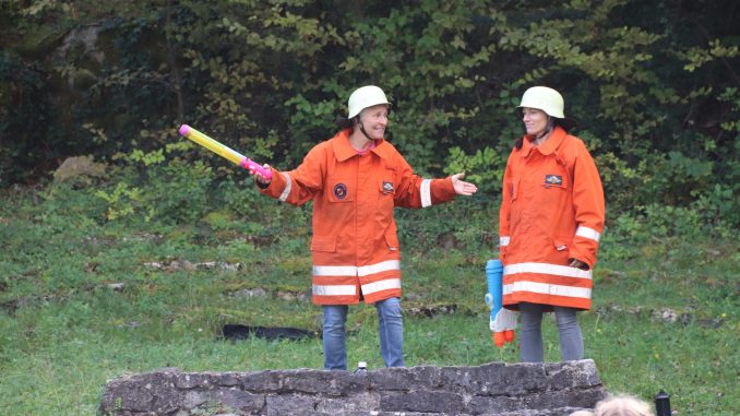 „Alarm, mach schnell, wir müssen das Feuer löschen“, so der Auftakt beim diesjährigen Kirch Kids Day. Ungefähr 50 Kinder von Vorschule bis Klasse 7 wurden von Steffi Alber und Katja Conte in Feuerwehruniformen begrüßt. „Aber wo war das Feuer?“, fragten sich sicherlich auch die Gastkinder aus Horrheim und Berlin? Noch war von dem Feuer nichts zu sehen, doch man wollte heute nichts anbrennen lassen, waren doch Feuerartisten eingeladen. Diese zeigten während ihrer 30 minütigen Feuer- und Akrobatik-Show einige Kunststücke, welche die Kinde „fesselte“. „Ich kann jetzt nicht klatschen, es ist viel zu spannend“, war nur eine von vielen Aussagen der Kinder.