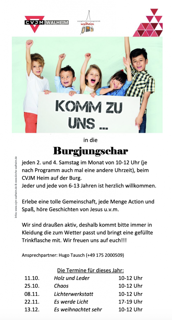 nach Programm auch mal eine andere Uhrzeit), beim CVJM Heim auf der Burg.